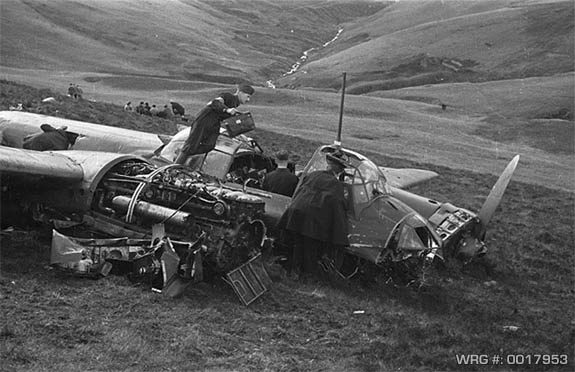 Junkers Ju 88A force landed near Mallwyd Wales on a raid to Liverpool, August 31, 1940.